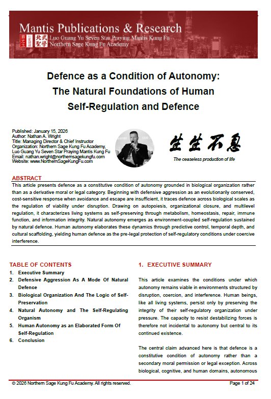 The central implication is that self-defence precedes moral doctrine and legal justification. Law and ethics formalize an already existing biological and agential necessity: the protection of autonomous regulation under threat. Defence is not justified because it is morally permitted; it is morally intelligible because it is structurally required for agency to exist.